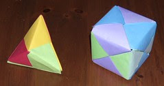 Anyway, at the end of the last school year his math class made some three dimensional folded paper shapes.
